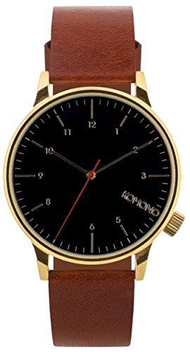 -. Title : Komono KOM-W2258 Men's Winston Regal Brown, Black, Gold Leather Band with Black Dial Watch