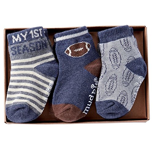 Product DescriptionHeathered sock set from Mud Pie feature football detailing and arrive in a gift box.0