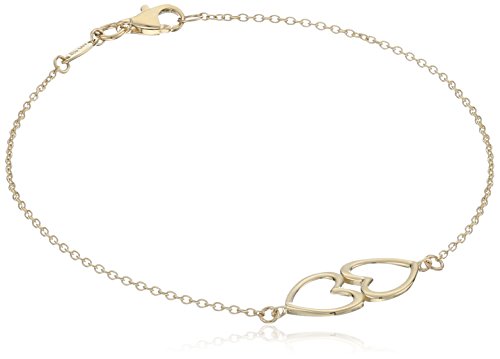 -. Title : 14k Yellow Gold Double Heart Design Charm Bracelet, 7.25"