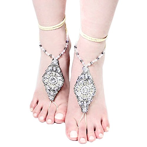 -. Feature : Bohemian Hippie Beaded Barefoot Beach Sandals Anklets / Color: Color: Clear, Silver / Anklet: 5" H, 24" + 2" L / 1-Pair Anklet / Can be worn barefoot or with heels/flip flops