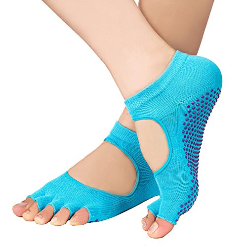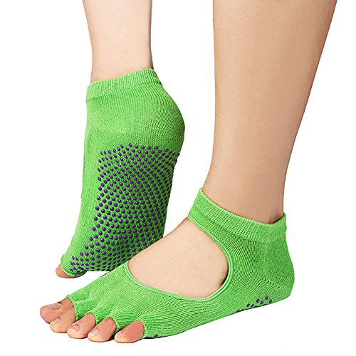 -. Feature : Size: both men and women can use;Material: cotton + polyester + spandex: more soft, more durable / Design: The half-toe design allows the toes to move flexibly, and to strengthen the grip on the ground; backless design allows you to exercise more comfortable and breathable / Health: Easily absorbs and evaporates sweat,Let each toe separate, effectively prevent the spread of bacteria / *Five toe construction allows toes to move and spread naturally. Fitted heel eliminates bunching and twisting. Arch band provides gentle pressure to lift and support. Open foot design feels barely there / Application: Perfect yoga, pilates, dance, bary, martial arts socks, can be used at home, traveling and in the studio.