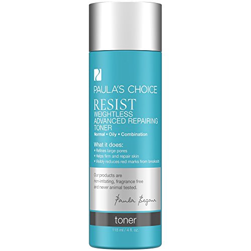RESIST Weightless Advanced Repairing Toner goes beyond the light hydration and skin-restoring benefits of our other Paula's Choice toners. This toner visibly smoothes signs of sun damage and aging as well as minimizing the appearance of enlarged pores and improving uneven skin tone. This toner has a super-light formula powered by niacinamide, a B vitamin that research has shown to visibly improve skin tone and minimize pore size. We also include an impressive range of other beneficial ingredients that can further improve visible signs of aging, including fine lines, wrinkles, and loss of firmness. This toner enhances the benefits of our RESIST Anti-Aging skincare system for normal to oily and combination skin. All Paula's Choice products are 100% fragrance free, clinically proven to be non-irritating, and never tested on animals.Feature