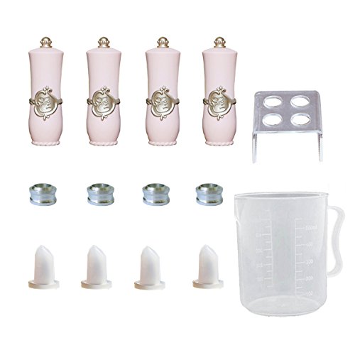 All Natural Lip Balm Kit: 4 Pcs 12.1mm tube,4 Pcs 12.1mm copper ring, 4 Pcs 12.1mm Lipstick Mold (Bird Pattern), 1 mold acrylic bracket,1 500ml measuring cup