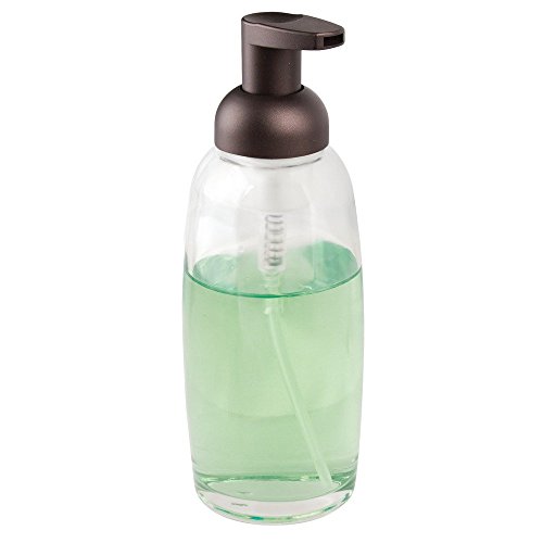 InterDesign Ariana Glass Foaming Soap Dispenser Pump for Kitchen or Bathroom Sinks, Clear/Bronze