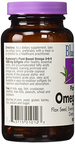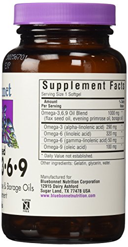 Bluebonnet's Plant-Based Omega-3-6-9 1000 mg Softgels (previously named Multi-EFA's 1000 mg Softgels) offer healthy essential mono- and polyunsaturated fatty acids from flaxseed, evening primrose and borage oils, which provide copious amounts of the popular alpha- and gamma-linolenic acids plus, oleic acid. Available in easy-to-swallow softgels for maximum assimilation and absorption.Feature