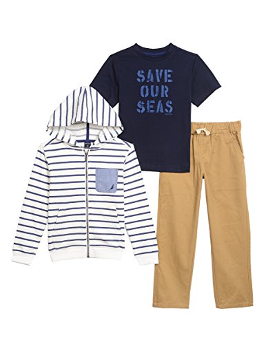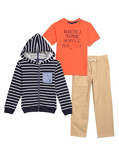 With a cool hoodie, comfortable graphic tee and pull on twill joggers, this Nautica set gets your little one dress-up and ready for play.