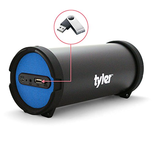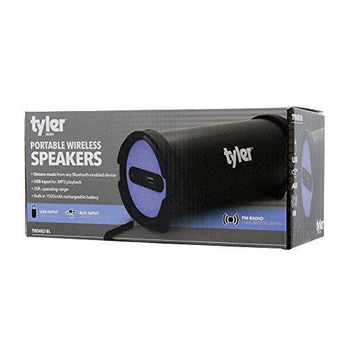 -. Binding : Electronics -. Brand : tyler -. Color : Blue -. EAN : 0712131667860 -. Feature : Superior Sound Quality: Experience your music in full-bodied Dustproof stereo realized through dual high-performance drivers (6W) and a unique round bass port. / Wireless Bluetooth Speaker compatible with iOS Devices, iPhone, Windows, Android, Mac/PC, any smartphone, tablet, computer, etc. / Built in FM Tuner, Auxiliary port, and USB Port for MP3 Playback / Incredible Battery Life: Long Lasting 6-8 hour battery with 30 ft. Operating Range / What You Get: Tyler TWS402-BL Bluetooth speaker, Micro USB charging cable, auxiliary cable, carrying lanyard, user guide, and our worry-free 12-month warranty and friendly customer service.L -. Label : Tyler -. Manufacturer : Tyler -. Model : TWS402-BL -. MPN : TWS402-BL -. PackageQuantity : 1 -. PartNumber : TWS402-BL -. ProductGroup : Speakers -. ProductTypeName : PORTABLE_AUDIO -. Publisher : Tyler -. Studio : Tyler -. Title : Tyler Portable Wireless Bluetooth Speaker TWS402-BL, Indoor/Outdoor 2.1 Hi-Fi Stereo Cylinder Loud Speaker, with Dual High Performance Drivers, Aux Line-In, FM Tuner, and USB Port, Blue -. UPC : 712131667860