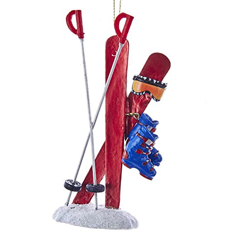 -. Feature : With this ski ornament, you can show off your love of skiing on your Christmas tree. / Finely detailed skis accented with ski poles, goggles and boots. / Durable resin material. / A perfect ornament for someone who loves to ski! / Measures approximately: 5 inches tall