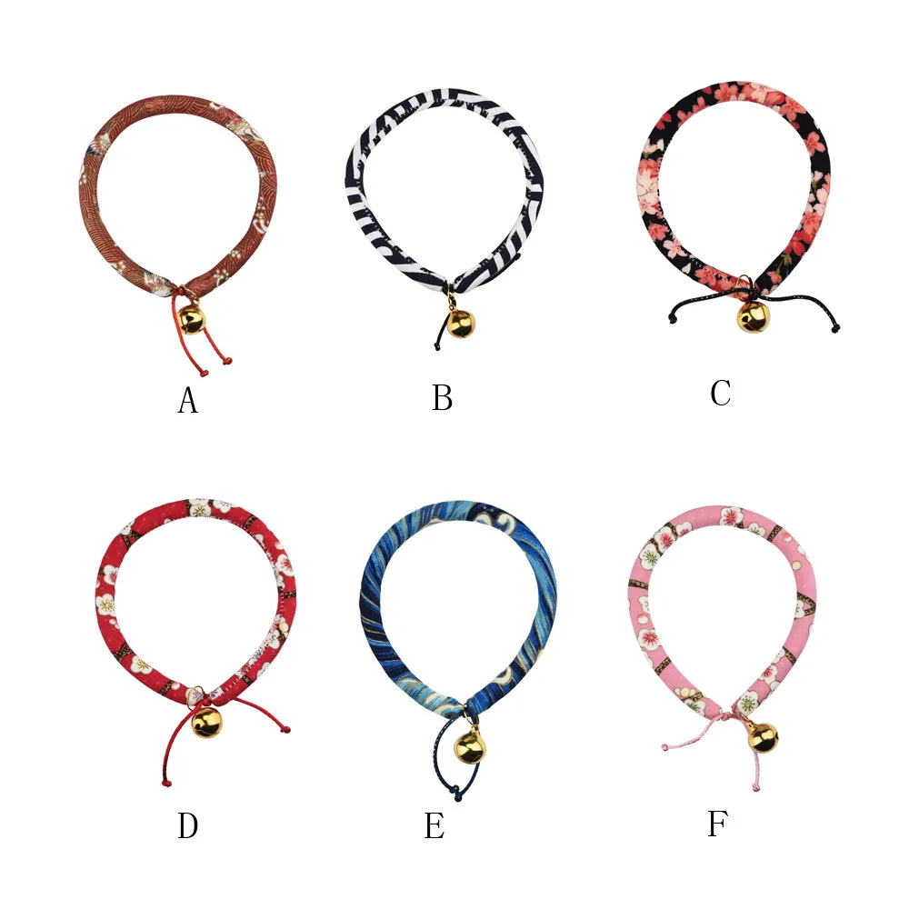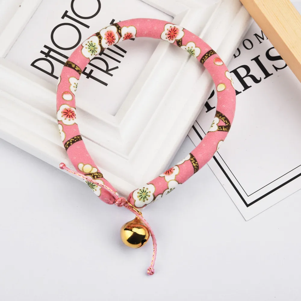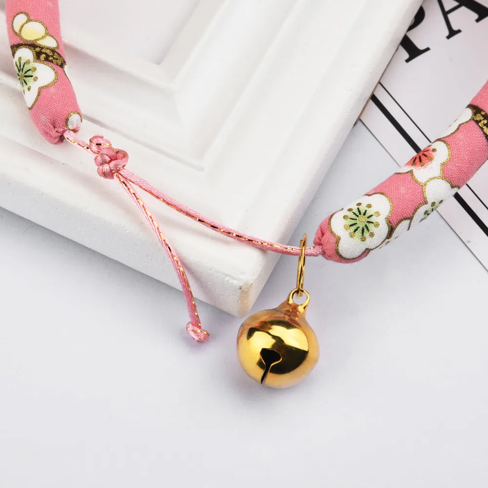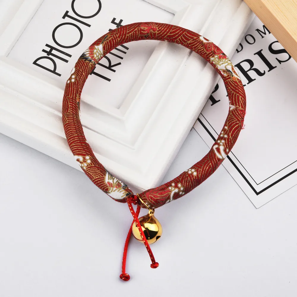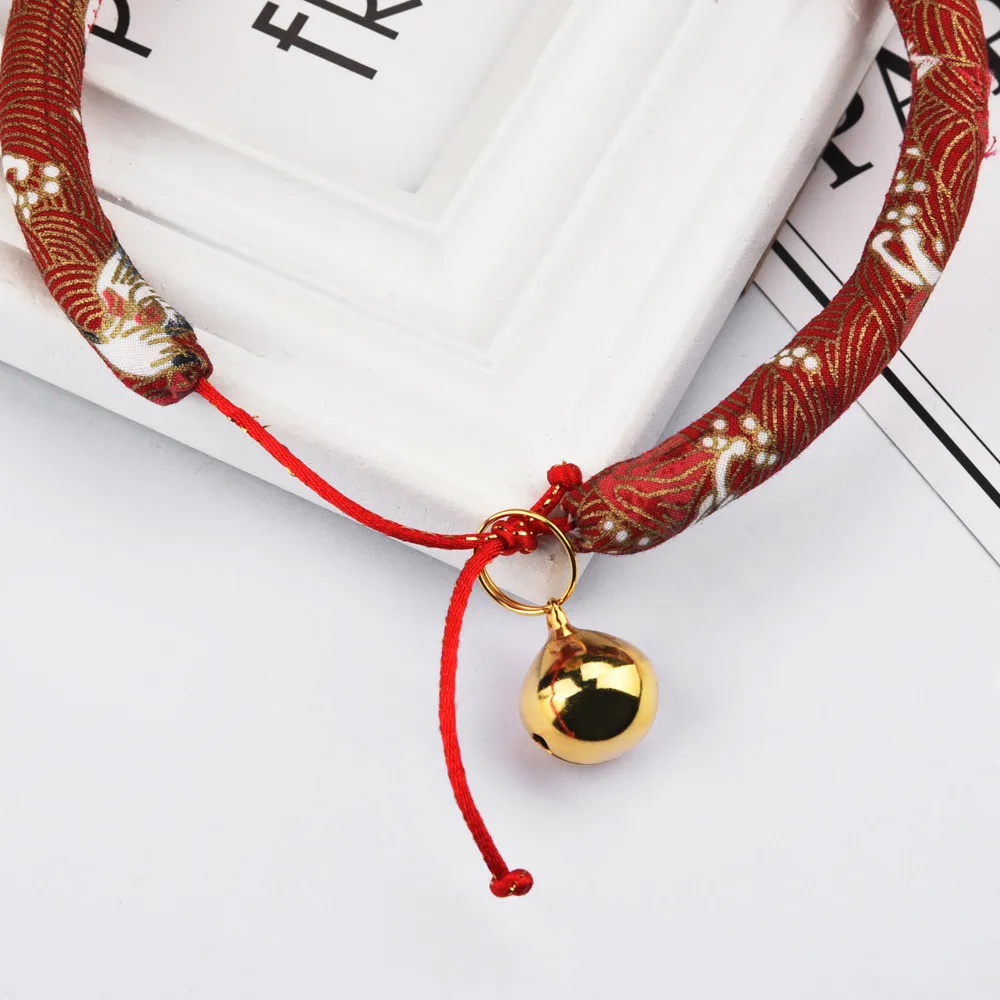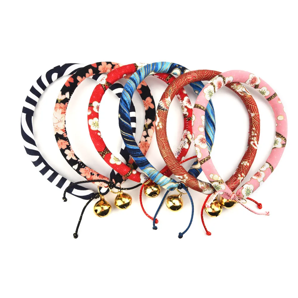Japanese Style Handmade Pet Cat Dog Bell Collar Small And Medium Size Adjustable