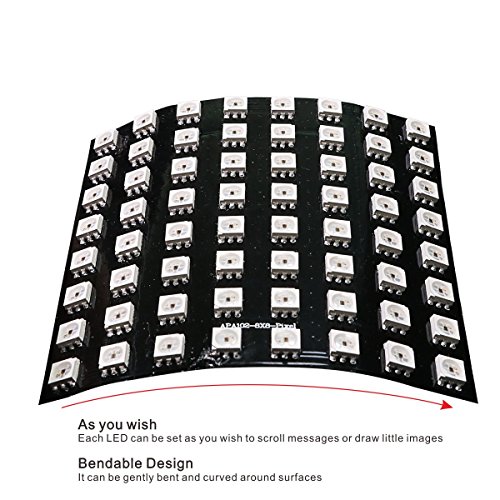 - Highly Smart: Each LED is individually addressable. You can set each LED as you wish to scroll messages or draw little images.
