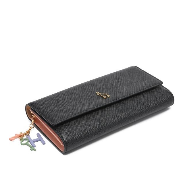 고급스러운 사피아노 가죽 바탕에 퍼피 로고 장식으로 포인트를 준 장지갑입니다.