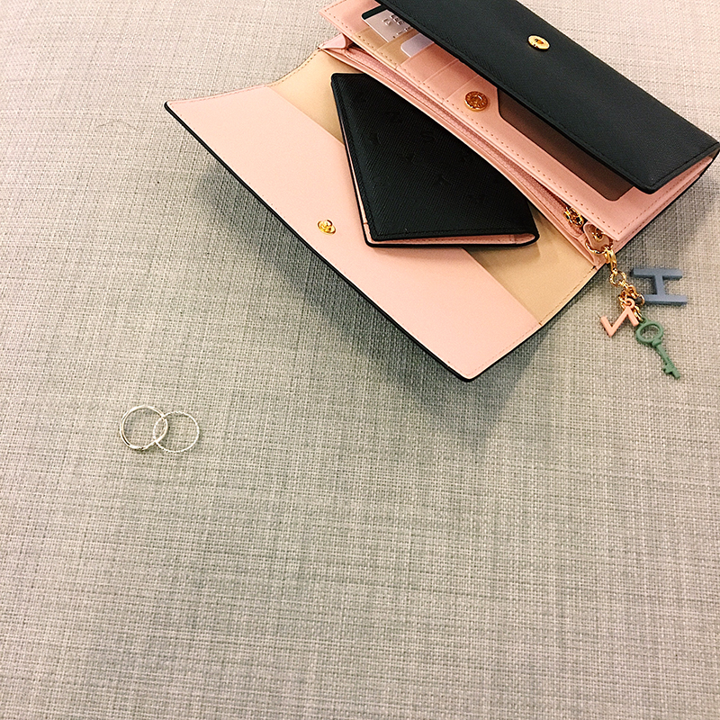 로고 참 장식으로 여성스러운 느낌을 살렸으며 탈착가능한 카드 지갑을 세트로 구성하여 실용적인 아이템입니다.