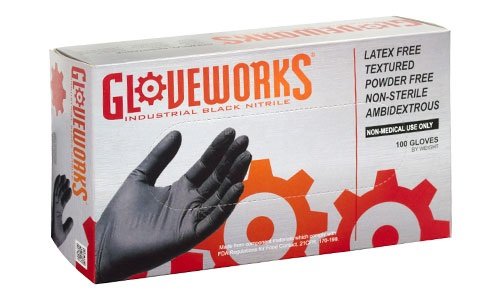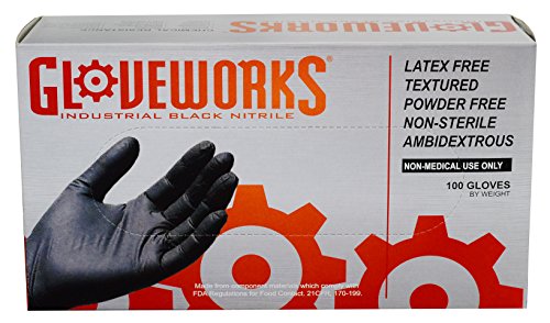 ReleaseDate : 2017-05-23 Studio : AMMEX Publisher : AMMEX Binding : Misc. Product Description Pros know how important it is to have the right gear for the job. You’d never settle for second rate when it comes to your toolbox?so why take chances with your safety and comfort? Reach for the disposable gloves that always meet your demands: AMMEX Glove works Black Nitrile Powder Free Industrial Gloves. More than 50 percent thicker than standard nitrile gloves, they’re durable?you won’t have to change them as often over the course of a shift?and strong: Nitrile has three times the puncture resistance of latex. It’s also nearly as elastic as latex, which means a terrific fit every time. AMMEX Glove works Black Nitrile Powder Free Industrial Gloves are 5 mil thick in the palm with 6-mil fingertips, so they’re a great companion for tools and machinery. They provide barrier protection from common chemicals like carburetor cleaner, and specialty chemicals like brake fluid. The surface is micro-roughened and the fingertips are textured for gripping power, even when the gloves are wet. The interior is polymer coated for easy donning and doffing, which eliminates the need for powder?and that eliminates worries about messy residue. AMMEX Glove works Black Nitrile Powder Free Industrial Gloves are popular in a number of industries, especially automotive, Jan/san, safety, and applications involving chemicals. Black is the hottest choice on the market for a cool look, and it hides dirt, grease, and grime, too. The gloves are latex-free and available in an extended size range, from small to XXL, and sold 100 gloves per box, 10 boxes per case. They’re made from component materials that comply with FDA regulations for food contact. As a pro, you need to believe in your tools. Disposable gloves are no exception. Make sure your gear has you covered, starting with AMMEX Glove works Black Nitrile Powder Free Industrial Gloves. 0