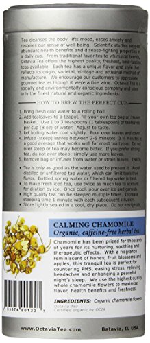 -. Title : Octavia Tea Calming Chamomile (Organic, Caffeine-Free Herbal Tea), Loose Tea, 0.92 Ounce Tin