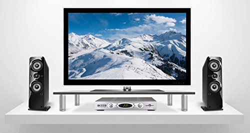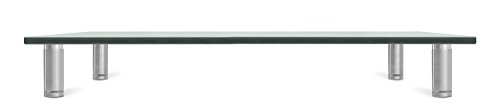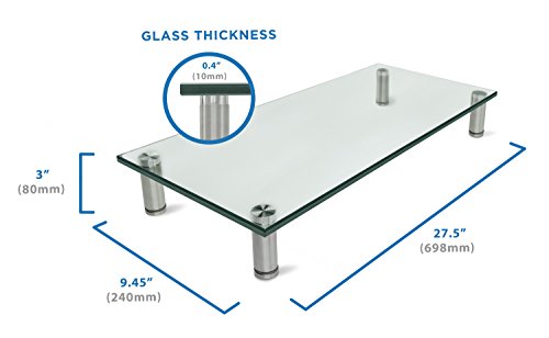 Feature : This elegant glass and Aluminum stand can be used as a TV stand or as an office desktop stand for PC and Apple computer monitors. It elevates displays by 2.75 inches. Creates additional horizontal surface under the monitors to store your laptop, keyboard or other office related document or accessories. When used with TVs, you can store home audio equipment or DVD players underneath the glass shelf. / MI-7261 uses premium Aluminum legs and 3/8 inch thick plate glass. Do not resort to cheap looking plastic and metal models that are selling at similar prices. The stand is heavy-duty and has a certified 66 lb carrying capacity. The weight capacity makes it sturdy enough for even larger screen size LCD and LED TVs. / The glass shelf is 3/8 inches thick. Overall assembly measures 27.5 inches wide and 9.5 inches deep. It is large enough for most computer monitors, laptops, flat panel TV bases, printers, cable set top boxes, streaming devices such as Apple TV, Roku, Amazon Fire TV, gaming consoles, DVD players and other audio and video components. / Most computer users complain from neck and back pain after sitting long hours in front of a computer monitor. Elevating the height of the computer monitor from the desktop level to a more ergonomic higher elevation might help alleviate the posture problems caused by incorrect monitor placement. You can use one or two of these stands to place additional monitors side by side for additional productivity. / Mount-It! experience and guarantee. Mount-It! is the expert in television mounts and office equipment accessories. We apply our decade long experience in this field to offer the best features at value prices. Contact our friendly customer support team for any questions or issues.