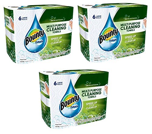 -. Color : White -. EAN : 0687926111234 -. Feature : 6 rolls / 49 sheets per roll / The quicker way to clean / Designed to dry clear and leaves surfaces 4x cleaner than soap and germy dishcloths / Ultra-durable Bounty with the long-lasting power of Dawn cleans -. Label : Bounty -. Manufacturer : Bounty -. Model : 92380 -. MPN : 92380 -. PackageQuantity : 3 -. PartNumber : 92380 -. ProductGroup : Kitchen -. ProductTypeName : KITCHEN -. Publisher : Bounty -. Studio : Bounty -. Title : Bounty with Dawn Large Rolls Multipurpose Cleaning Paper Towels, 49 sheets, 6 rolls (Pack of 3) -. UPC : 687926111234