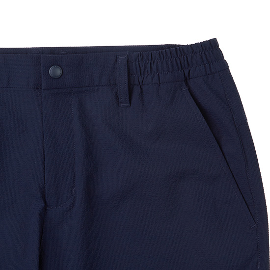- 허리 사이드 밴딩과 전체적인 시어서커 원단이 돋보이는 남성 팬츠.