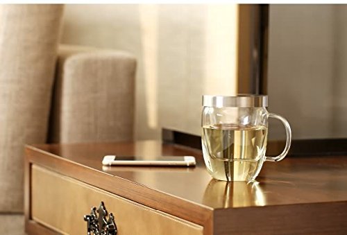 -. Feature : Made of heat-resistant borosilicate glass / Traditional 3-part cup technology with modern design / Glass tea cup with unique slow-drip glass infuser / Stainless Steel lid transforms into coaster / Capacity: 500ml (16.9ml)