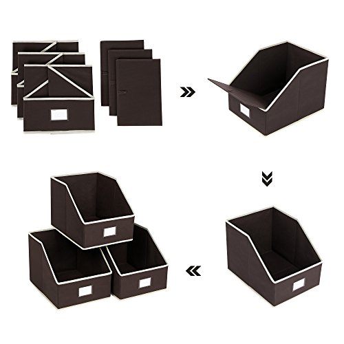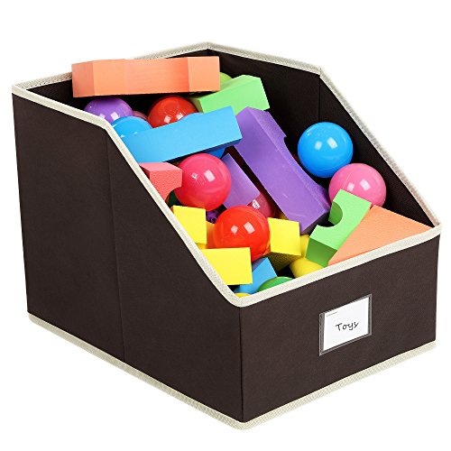 SONGMICS 3 Pack Open Storage Bins Foldable Trapezoid Storage Cubes Non-woven Cloth Organizers with Label Holders Brown UROB03K