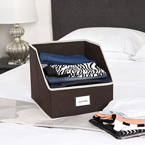 TILT-CUT OPEN CLOTH ORGANIZERS: Tilt-Cut Storage Bins with front cut makes finding things convenient; it allows easy access when put on the highest shelf