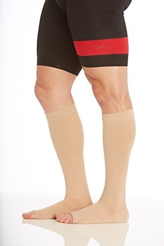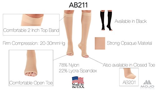 -. Feature : Unisex Surgical weight Support Opaque Knee Hi 20-30mmHg Firm Compression Open Toe / The Opaque material for men and women hugs legs to evenly reduce fatigue, pain and swelling / Made of a durable Opaque material. This strong Surgical Weight Knee Hi Style will provide a firm fit and graduated 20-30mmHg compression / Just like the big name "brands", we take 4-6 compression measurements at precise intervals between the ankle and end of garment. Multiple measurements guarantee our garments are comfortable and deliver an accurate distribution of the pressure gradient. Satisfaction Guaranteed! / **Order by (A)nkle & (C)alf circumference Measurements - Small: A=6.5-8.5 C=10.5 -15 Medium: A=8-10 C= 11.5-16 Large:A=9.5-11 C=12.5-17 XL: A= 11-13 C= 13-18 ** Reinforced heel and toe ** Comfortable, non constricting top band ** Beige and Black
