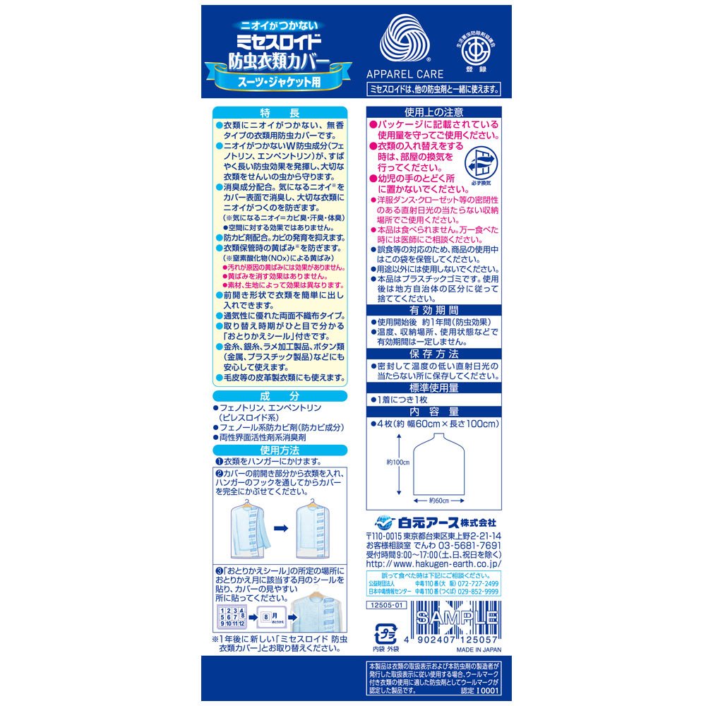 ● It is an insecticidal cover for non-odor type clothing that does not stick to clothes.