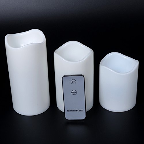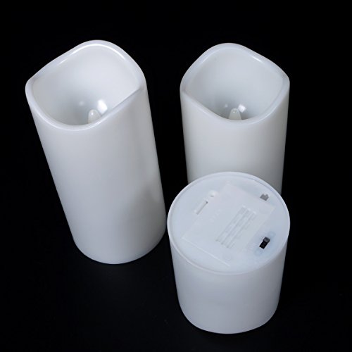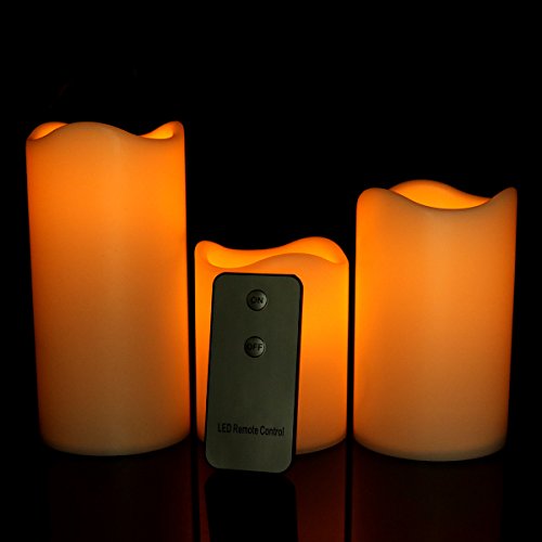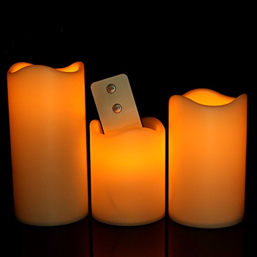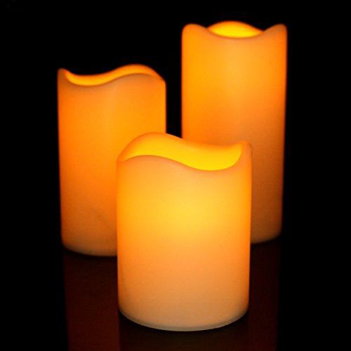 Youngerbaby Set of 3 Yellow Flickering Flameless Plastic Remote Control LED Candles With Timer,Height 3" 4" & 5" - Diameter 3" (Batteries Included) Pillar Candles For Indoor/Outdoor, Party, Gift