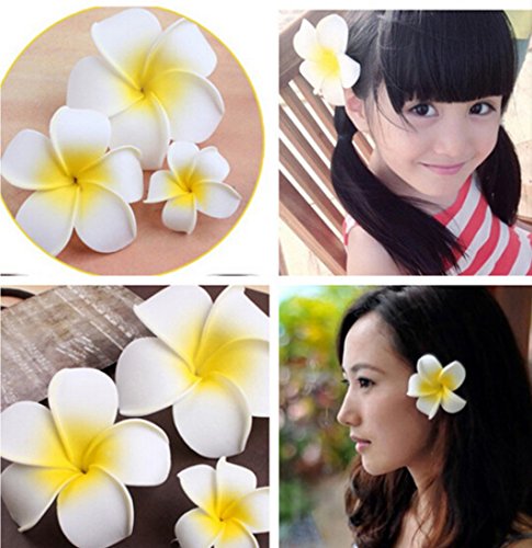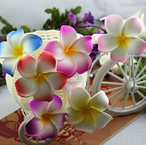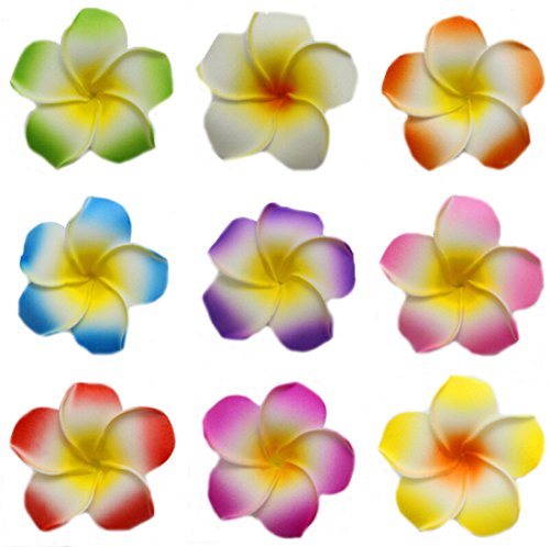 Flyusa 100 Pcs Hawaiian Foam Artificial Plumeria Rubra Hawaiian Flower Petals For Wedding Party Decoration,Diameter 3.2inch,Hot Pink