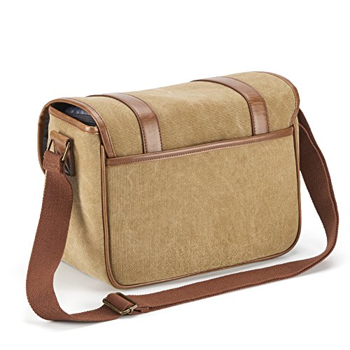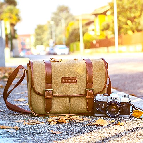 -. Title : Evecase カメラバッグ 一眼レフ カメラケース キャンバス製 ショルダーバッグ 仕切パッド調整可 アウトドア 通勤通学 - カーキ
