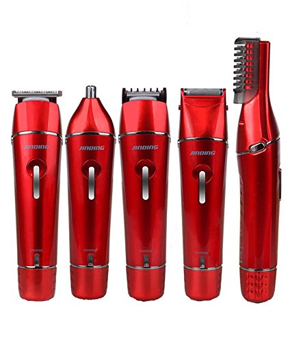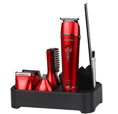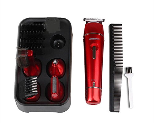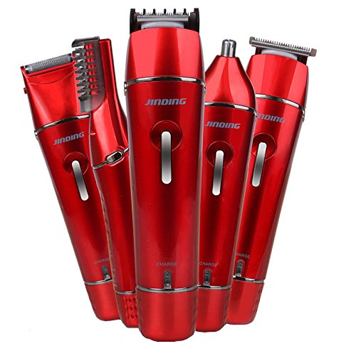 JINDIN Electric Hair Clipper Grooming Kit Nose Ear Beard Trimmer Shaver Rechargeable Cordless Hair Cutting Suit for Family Red
