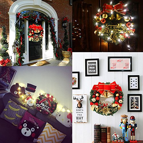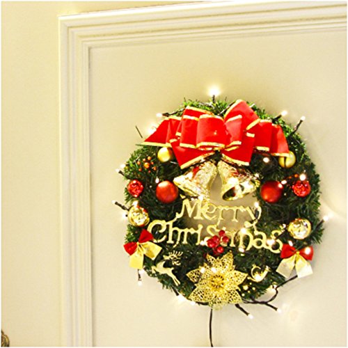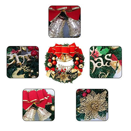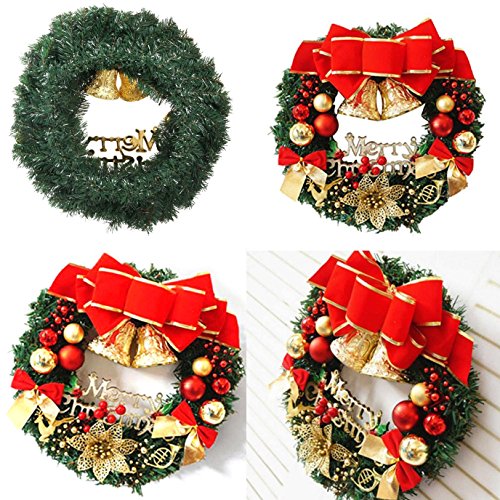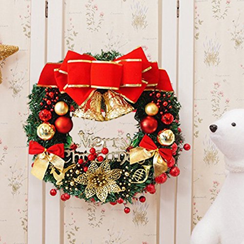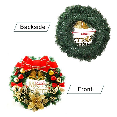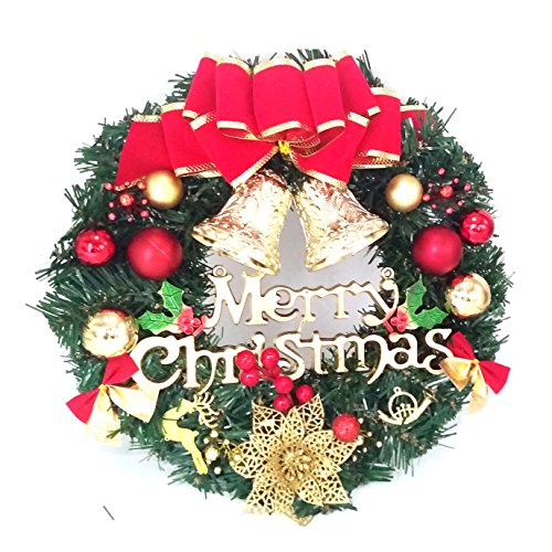 Bonng Christmas wreaths Garland Ornament,14" Merry Christmas Crestwood Spruce Christmas Wreath Decorative With Bells Balls Bowknot Silver bristle Red Berries For House Door Wall Ornament Decor