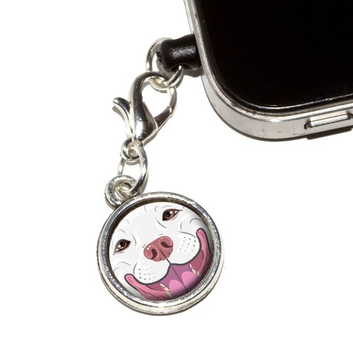 Graphics and More White Pit Bull Face - Pitbull Dog Pet Anti-Dust Plug Universal Fit 3.5mm Earphone Headset Jack Charm for Mobile Phones - 1 Pack - Non-Retail Packaging - Antiqued Silver