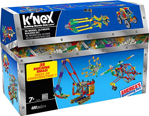-. Feature : CLASSIC & MICRO PIECES: The set comes with 480 K'NEX parts and pieces in a mix of classic and micro sized parts. It includes rods and connectors that are attach to one another in different ways, allowing kids to unleash their creativity and skills in designing a variety of shapes, figures, and models. The snap-fit pieces stick together securely and can be easily reassembled into other creations. / REAL MOVING PARTS - Unlike other building toys, K'NEX lets builders create different models that actually move. This building set allows them to make interactive toys and figures like trucks, airplanes, helicopters, and auto parts such as wheels, wings, rotors, and tracks. Constructing your own buildings, amusement park rides, and bridges isn't just a dream when you have this building set! / CONVENIENT STORAGE - It can be a problem to store small plastic toy parts into one place, and the last thing you want is them getting lost! Keep all the K'NEX parts in one place that is easy to access. Store all those precious pieces in this handy treasure chest that kids will always love to open. / VERSATILE - K'NEX 35 Model Building Set includes an instruction booklet that shows builders how to create 35 unique models with its step-by-step guidelines. This toy is ideal for kids ages 7 and above, allowing them to create anything that their minds can come up with. Watch your kids' imaginations grow through the sheer amount of models they can make with the K'NEX 35 Model Building Set. / STEAMaginationTM: It's the connection of STEAM (science, technology, engineering, arts & math) with a child's natural curiosity and creativity and it powers the fun of each and every K'NEX building set. Building with K'NEX puts children on a path towards a fundamental understanding of STEAM/STEM subjects