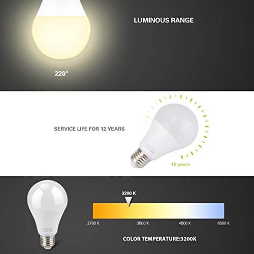 9 Watt Led Bulbs,Preiswert Pack Sale,Warm White Color, 3200K Color Temperature;Luminous Flux:810Lm;Filed Angle:270°,Voltage:AC185-265V;Shape:A19;Lamp Socket:E26;