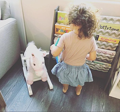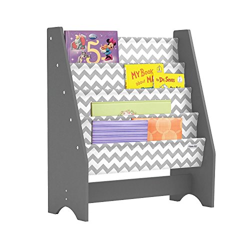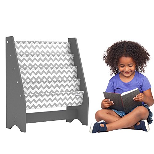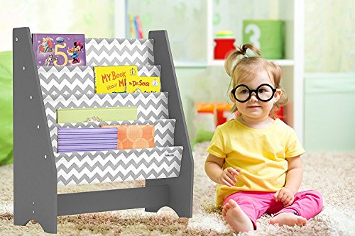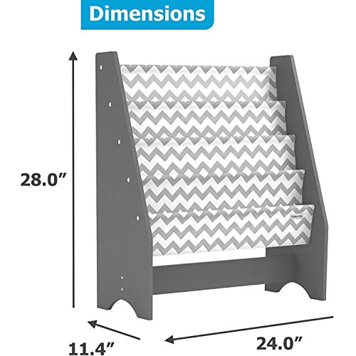 Pidoko Kids brings you yet another masterpiece. Fresh gender neutral color bookcase in gray, with chevron print fabric. Makes a great gift set for children. Strong sturdy wood and the soft fabric shelves keep books from being damaged. Overall, helps promote the concept of stowing away books when done reading, or simply organizing rooms so everything's in place. No more messy play rooms!