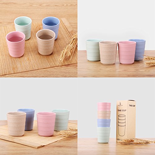 -. Title : UPSTYLE Eco Friendly Healthy Wheat Straw Biodegradable Bamboo Plastic Mug, Tumbler, Cup for Water, Coffee, Milk, Juice, Tea size 200ml (Pack of 4,Green, Blue, Pink, Yellow)
