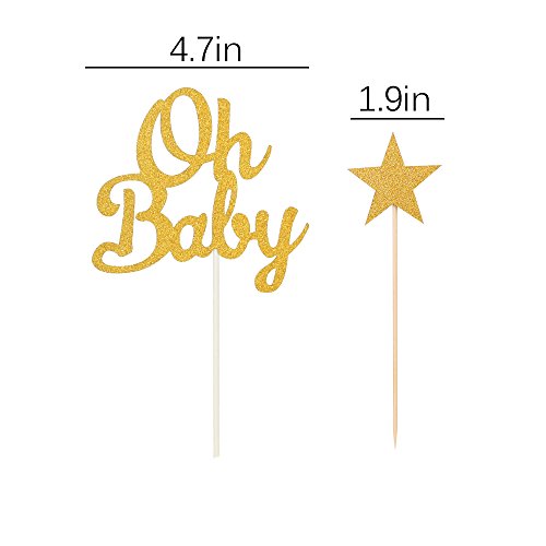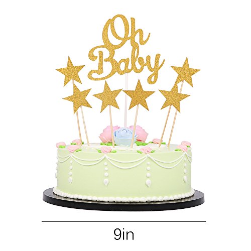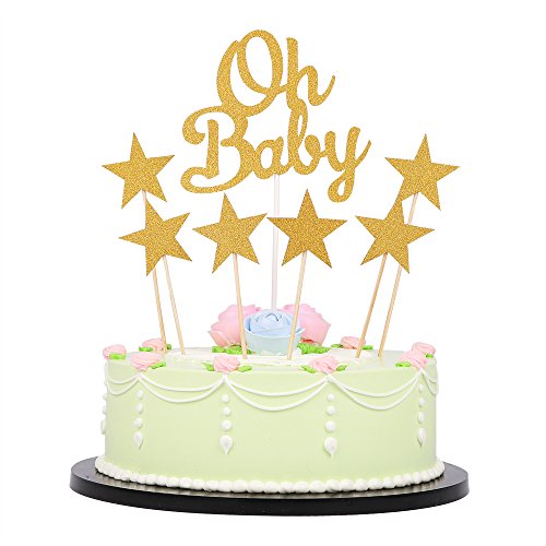 LXZS-BH Pack of 6 Five-pointed star and 1 Glitter "Oh Baby" Cake Toppers | Wedding Engagement Anniversary Baby Shower Birthday Party Decorations (Gold)