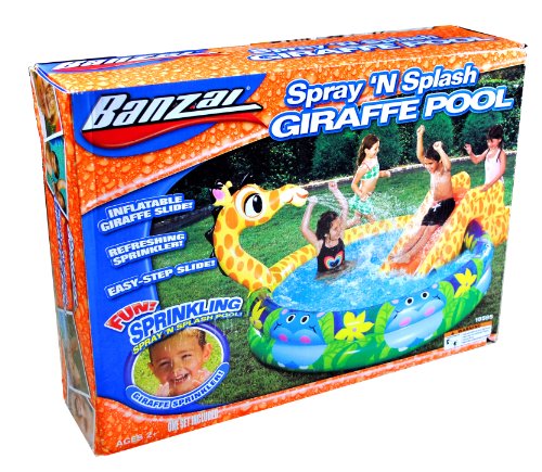 -. Title : Banzai Spray 'N Splash Series Swimming Pool - GIRAFFE POOL with Inflatable Giraffe Slide, Built-In SP.R.Inkler and 1 Repair Patch (Pool Diameter: 58")