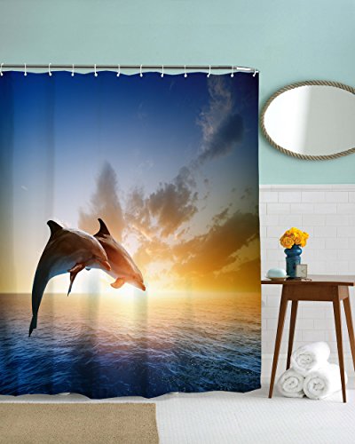 Couple dolphin European Style Bathroom Decoration Luxurious Cozy Lovely Decor Pleasing Peculiar Design Hand Drawing Effect Fabric Shower Curtain(71 X 71in)
