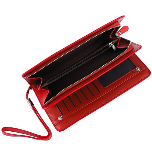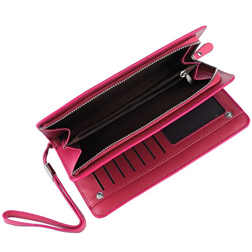 | EUBags Women's Wallets Leather Wristlet Clutch Long Wallet Card Holder with Wrist Strap Wallets... |
