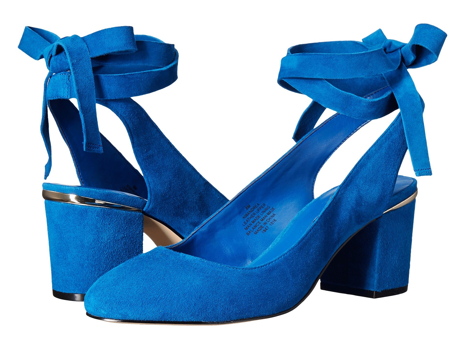 | Product Information SKU: #8849377Keep your balance in the elegant Nine West? Andrea pump.Suede upper.Wraparound ankle straps with tie-up closure.Round toe.Man-made lining.Lightly padded footbed.Wrapped block heel.Man-made sole.Imported.Product measurements were taken using size 8, width M. Please note that measurements may vary by size.Weight of footwear is based on a single item, not a pair.Measurements: Heel Height: 2 1?2 in Weight: 10 oz |