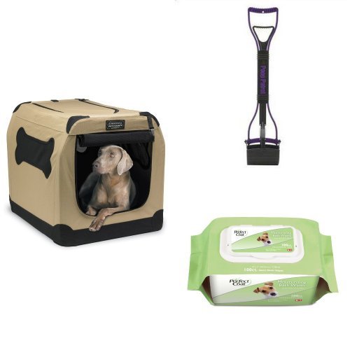 -. Feature : Firstrax Port-A-Crate E2 Indoor/Outdoor Pet Home (36 inches) / Lazy Pet Poop Patrol Jaw Scoop / 8in1 Perfect Coat Bath Wipes (100 Count Dog Moisturizing packaged in a Tub)