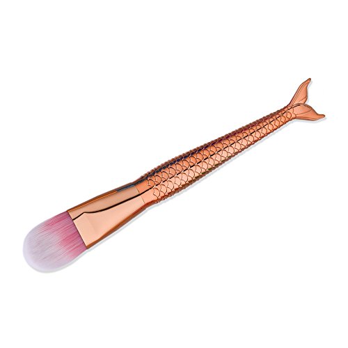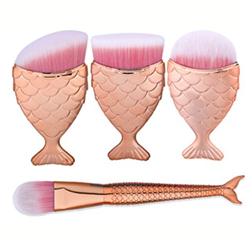 Makeup Brushes Set, LHEI Fish Scale Makeup Brush Fishtail Bottom Brush Powder Blush Makeup Cosmetic Brushes Tool (4pcs Rose Gold)