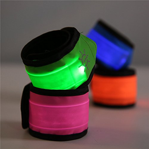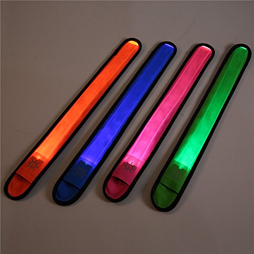 [4 Pack] Emmabin LED Slap Armband Lights Glow Band for Running, Replaceable Battery - 4 Modes (Always bright/Quick Flashing/Slow Flashing/Off), 35cm Glow Bracelets with 4-Pcs Package (Mode: EB-AB4X35)