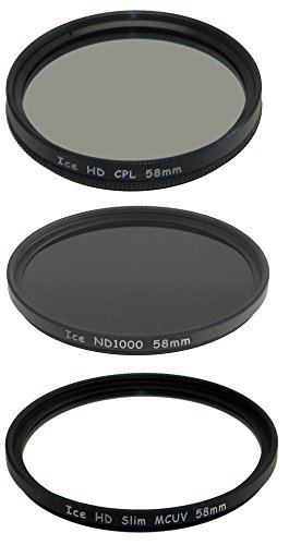 Studio : ICE Publisher : ICE Binding : Electronics Product Description Filter #1 ND1000. Slim: 3.6mm deep (not inc rear threads). Ideal for Wide Angle. 10 Stop exposure correction. No color cast. Black-rimmed glass. Superfine matte black frame. Includes front threads for filters or Hood. Filter #2 CPL Filter #3 UV Includes filter wallet 0
