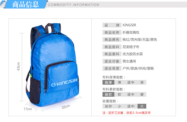 韩版防水可折叠户外轻便双肩包女超轻书包女包旅行大容量便携背包