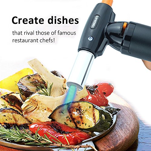 FUN & EASY TO USE : Easy to fill and operate (Butane Sold Separately). You need a kitchen torch that is reliable and simple to use and control. The ignition lights your cooking torch with the single press of a button time after time. You’ll get perfect results for any dish with the adjustable flame and temperature, so it’s really efficient. Refilling is quick and easy using widely available BUTANE GAS FOR LIGHTERS. (Butane not included).