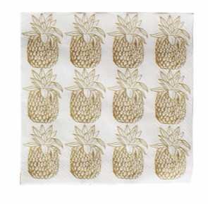 - 40 paper napkins. Pineapple design napkins. Metallic gold napkins.