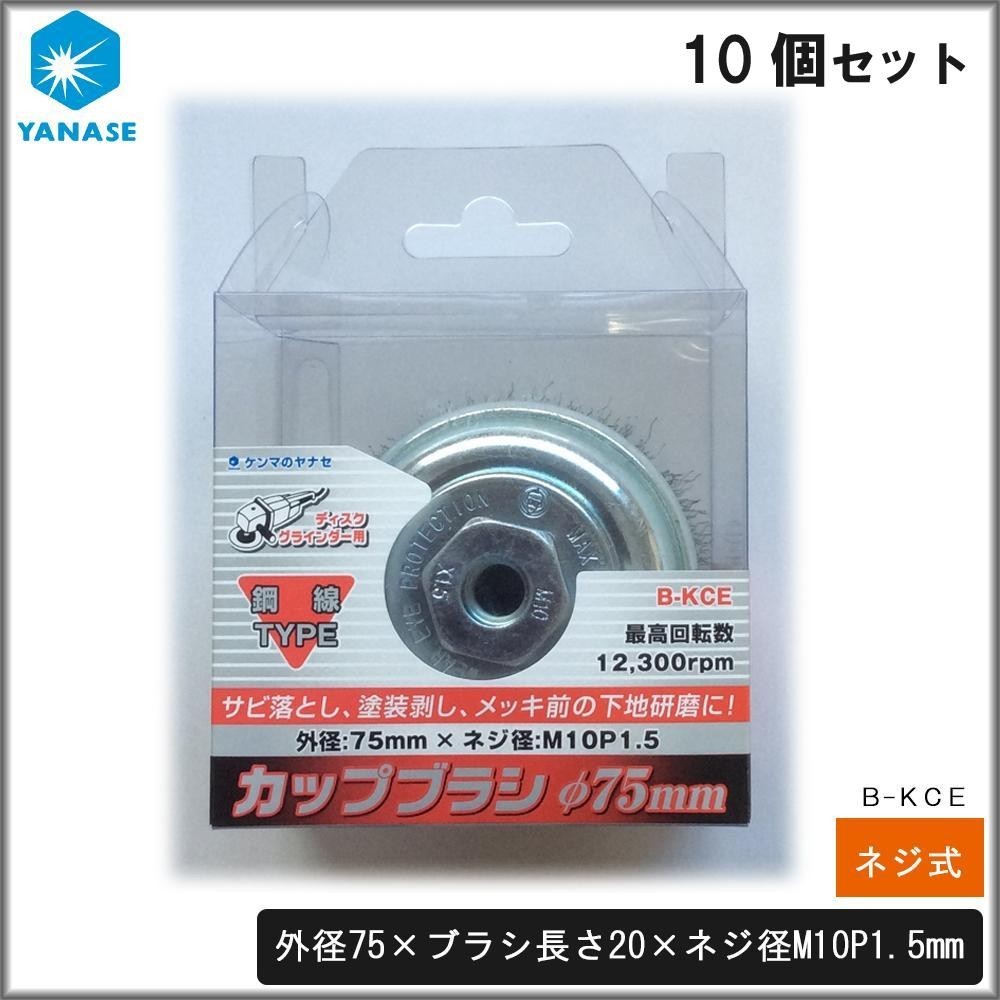 冷間引延により硬度をアップ。鉄など、一般金属の研磨・研掃にご使用下さい。 製造国:中国 素材・材質:鋼 商品サイズ:外径75×ブラシ長さ20×ネジ径M10P1.5mm、金具径60mm 仕様:最高回転数:12300min-1(rpm)ネジ式適用機種:Φ100グラインダー線種:鋼線Φ0.3 セット内容:10個セット ※サプライヤー直送品 ご注文後3~4営業日後の出荷となります【商品名】ケンマのヤナセ 鋼線カップブラシ Eタイプ 外径75mm ネジ式 B-KCE 10個セット