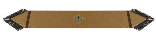 Studio : HomeMax Imports Publisher : HomeMax Imports Binding : Kitchen Product Description The Las Cruses table runner consists of soft tan faux tan with a beautiful turquoise cross accented with studs and finished with fringe, making this truly the vocal point to any table. 0